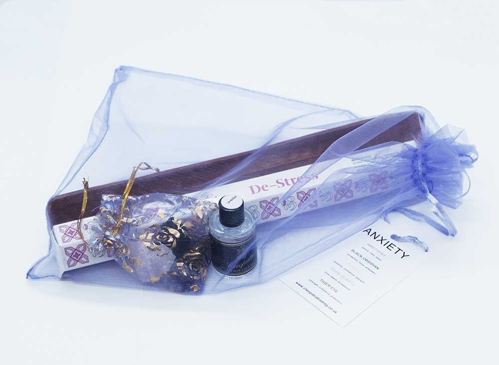 Anxiety Set, Incense, Oil, Ashcatcher, Crystals (Amethyst, Obsidian, Citrine, Rose Quartz, Tiger Eye)