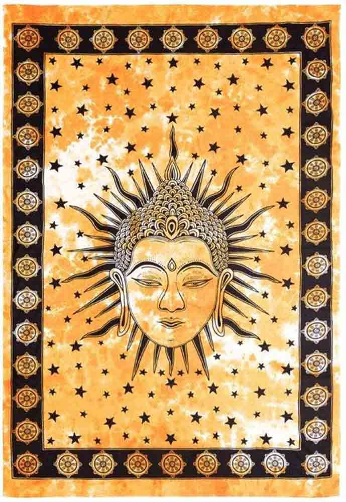 Bedspread Double Buddha Head Yellow