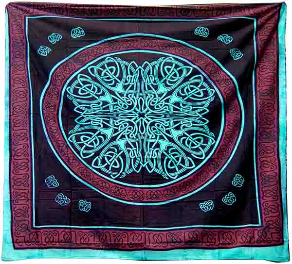 Bedspread Double Celtic Mandala Turquoise Tye Dye