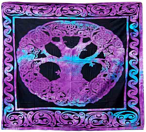 Bedspread Single Celtic Tree Of Life Purple Tye Dye