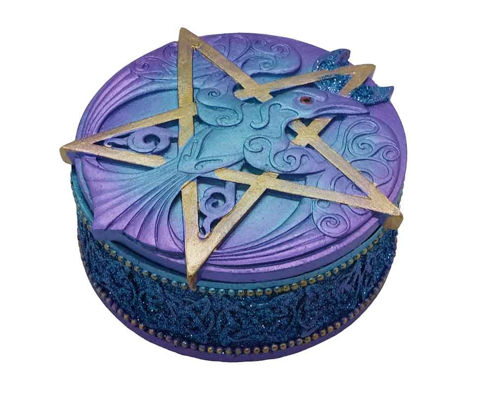Box Bird on Pentagram Round Blue 13 X 12 X 5.5 cm