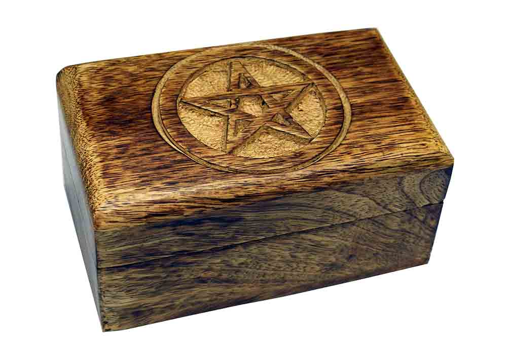 Box Rectangle Wooden Carved Pentagram 5X2X3 Inch