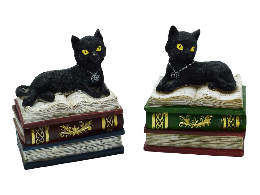 Box Black Cat On Book Set Of 2 10X7X12cm