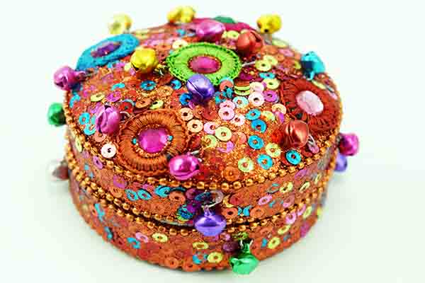 Box Circle Orange Glitter With Multi Coloured Sequins And Beads 8cm