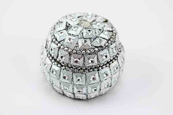 Box Dome Silver Glitter With Beads 5cm