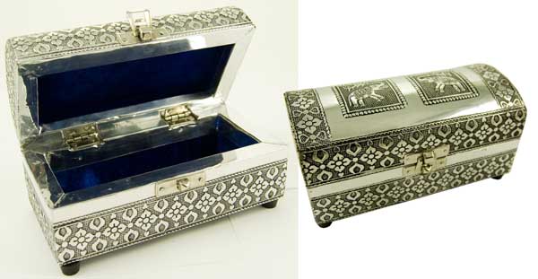 Box Jewellery Metal With Blue Velvet Interior 6X3 Inch