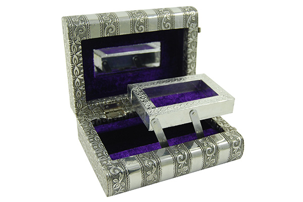 Box Jewellery Metal With Purple Velvet Interior 6X4X2.25 Inch