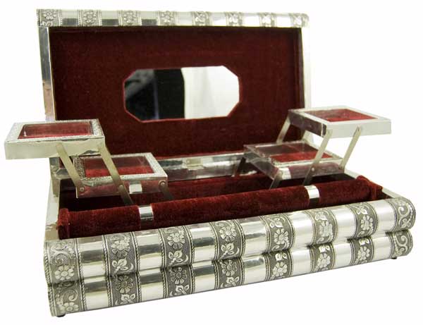 Box Jewellery Metal With Rose Red Velvet Interior 15X8 Inch