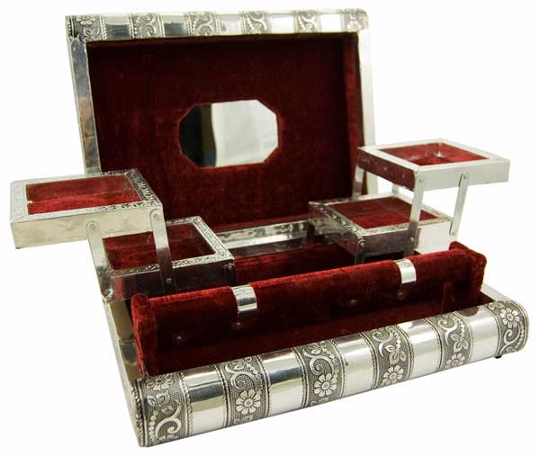 Box Jewellery Metal With Rose Red Velvet Interior 11X8 Inch
