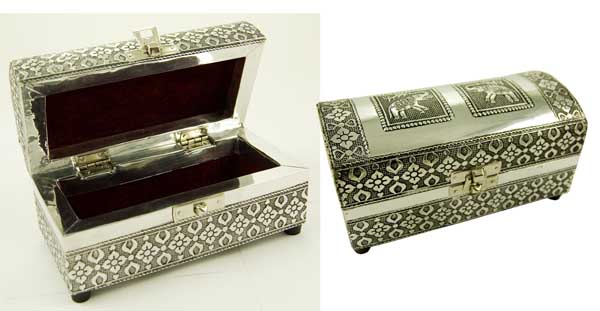 Box Jewellery Metal With Rose Red Velvet Interior 6X3 Inch