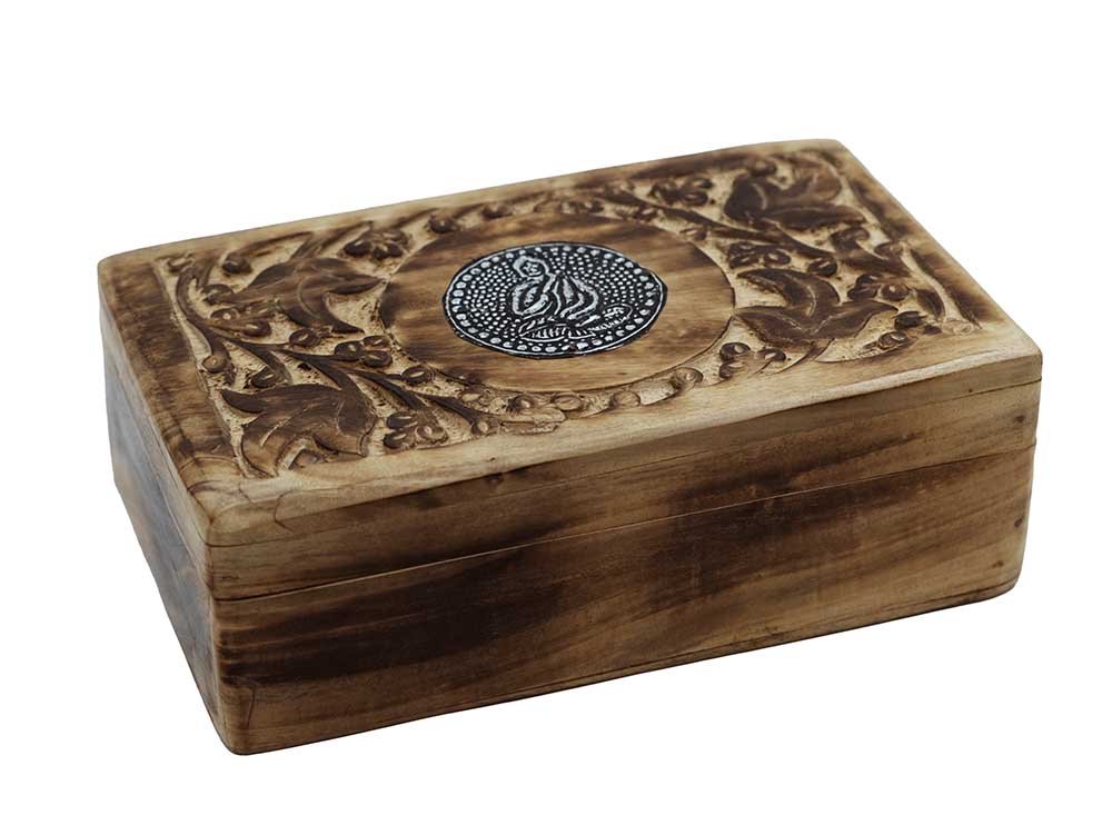 Box Wooden Rectangle With Metal Buddha Symbol 5X8 Inch