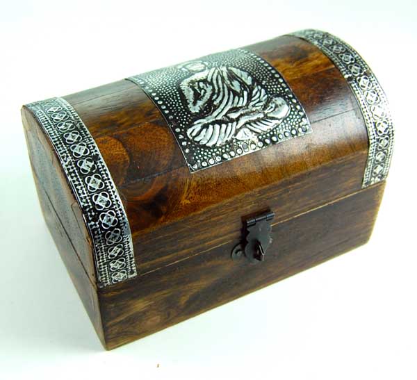 Box Wooden Chest With Metal Buddha Symbol 6X4 Inch