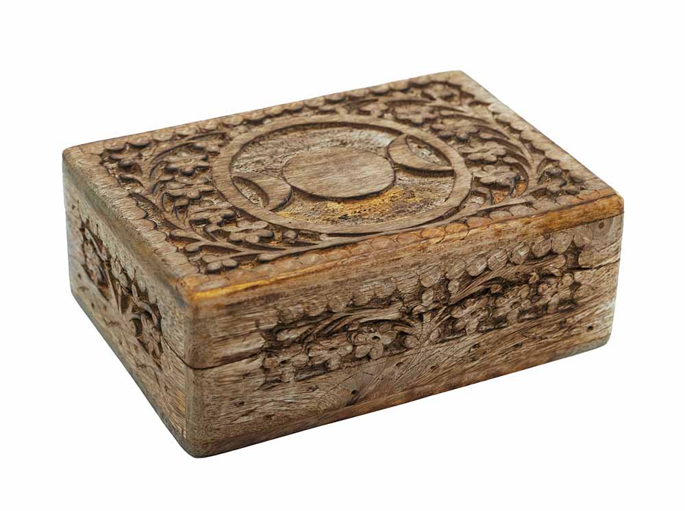 Box Wooden Carved Pagan Symbol With Floral Design 7×5 Inch