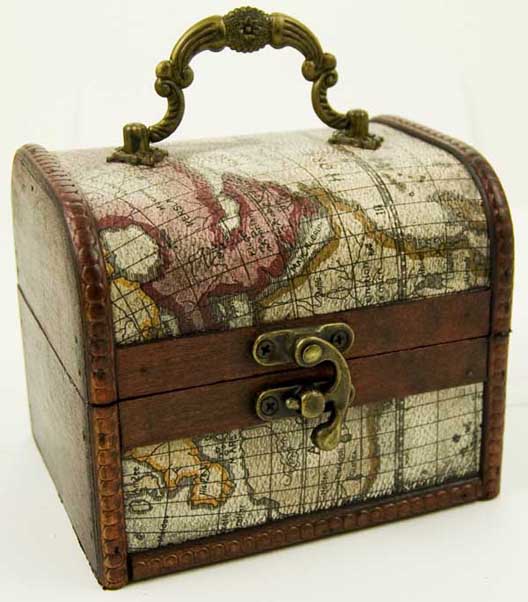 Box Wooden Chest Old Map Design With Metal Fastener 12X10X10cm