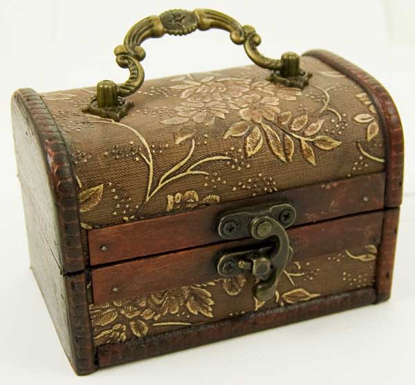 Box Wooden Chest Leaves Design With Metal Fastener 12X8X8cm
