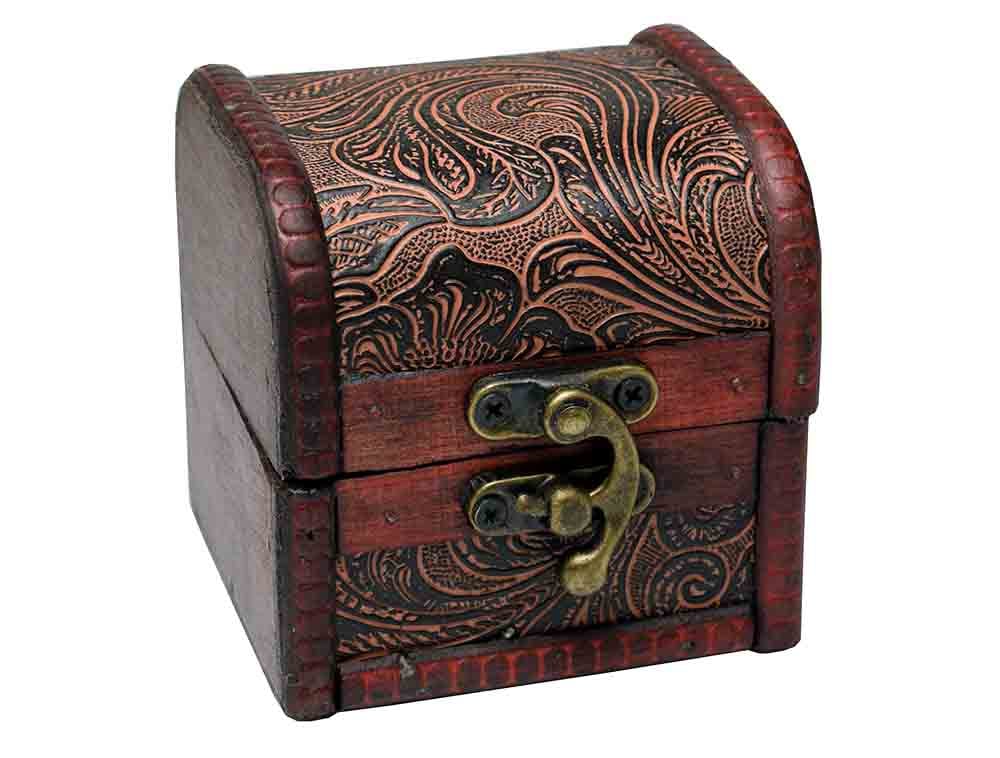 Box Wooden Chest Trunk Style Floral Embossed Design With Metal Fastener 8X8X8cm