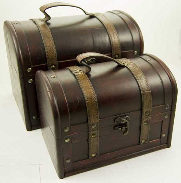 Box Wooden Chest Brown Plain Antique Style With Metal Fastener Set Of 2 Sizes 27X19X20.5cm And 22X14X15.5cm