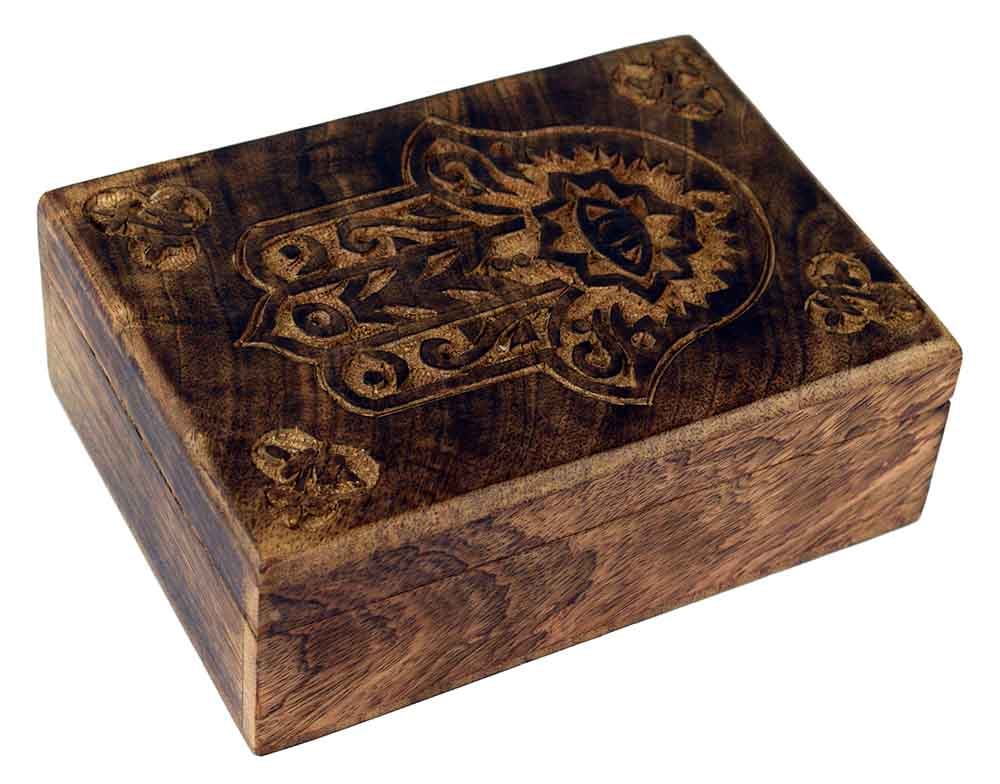 Box Wooden Carved Fatima Hand Design 6×4 Inch Mango Wood