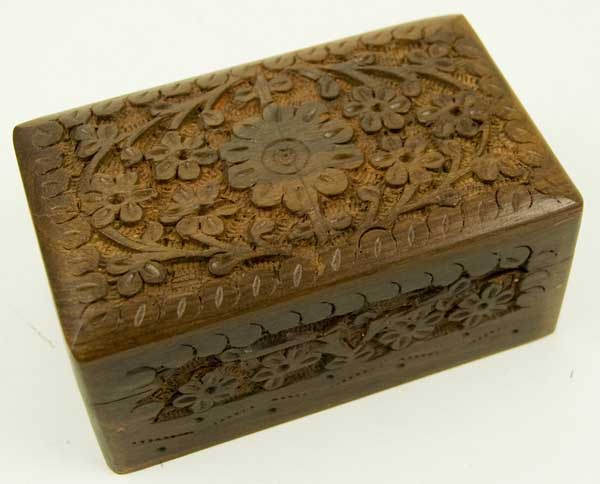 Box Wooden With Flowers Made From Sheesham Wood 5X2.5X3 Inch