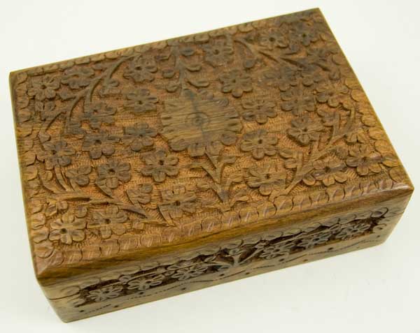 Box Wooden With Flowers Made From Sheesham Wood 7.2X2.5X5 Inch