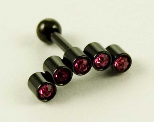 Body Piercing Labret 316L Surgical Steel Black PVD Tragus With Pink Stones 1.2X6X2.5mm