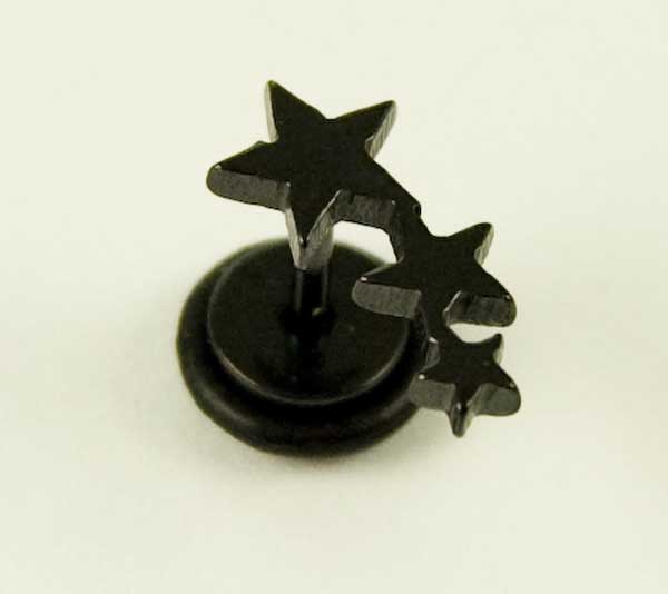 Body Piercing Plug Fake 3 Stars Black 1.2X6mm Flat Back