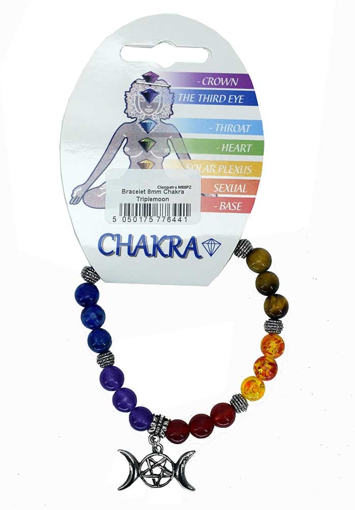 Bracelet 8mm Bead Chakra With Triple Moon Charm