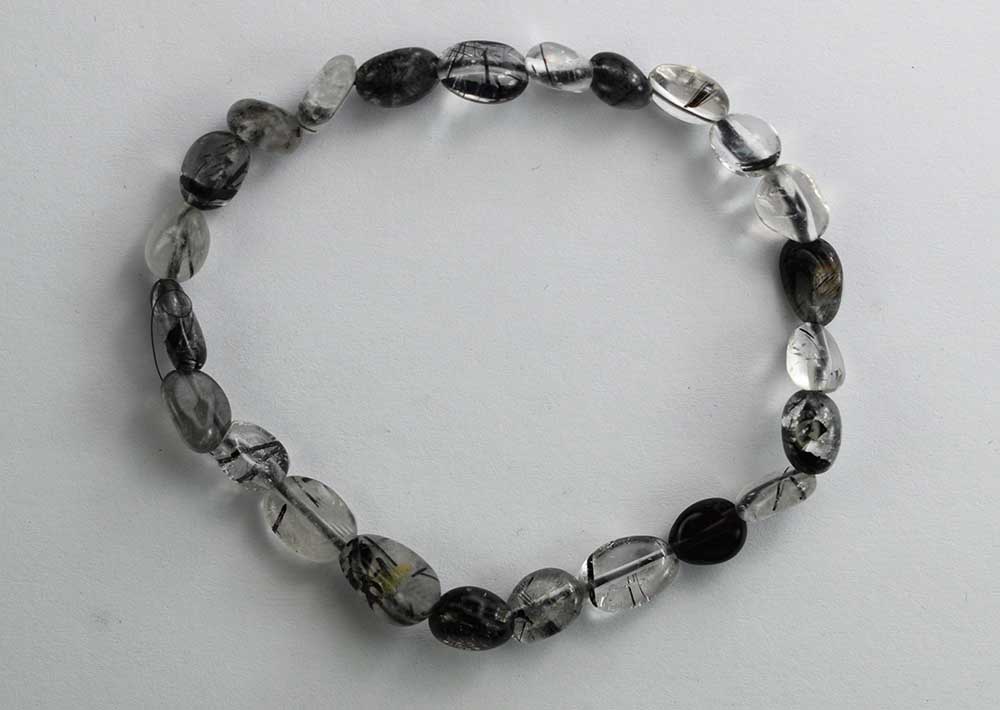 Bracelet Black Rutilated Quartz 6-8mm Nugget Shape