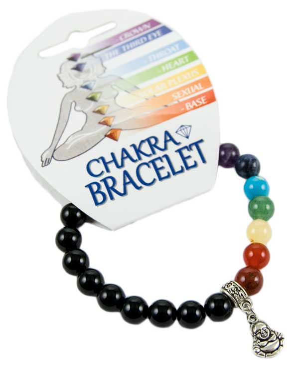 Bracelet Onyx And Chakra Stones With Buddha Charm