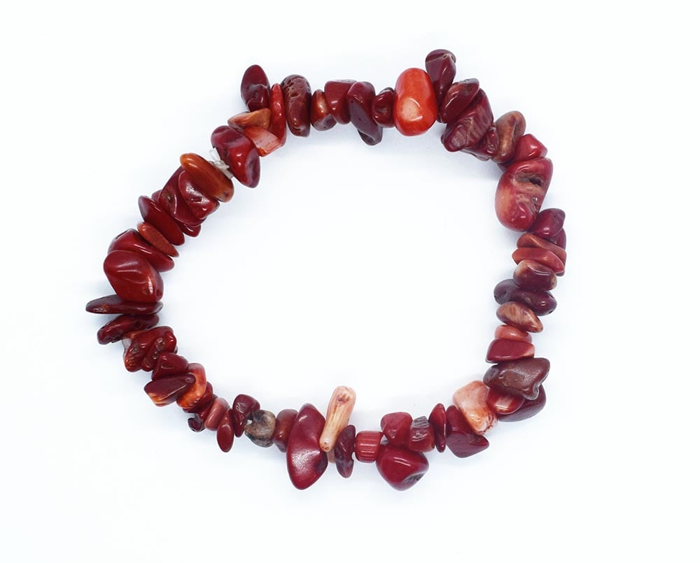 Red Coral is said to absorb negativity, support friendships and groups/communities. It is also said to invoke passion, enthusiasm and optimism in the wearer and encourage romantic love. Believed to allign with root chakra and help with conditions of the bladder and kidneys. This Red Coral chip bracelet has been carefully shaped and polished to bring out the beautiful colour of the stone. It is strung on coordinating elastic that fits any wrist, making it comfortable and easy to wear. This beautiful Red Coral bracelet is a great way to harness the rich energies of this stone during meditation or during everyday use as a fashion accessory and it looks great worn with other crystals. All Red Coral bracelets are unique and there are no two alike. You will receive 1 Red Coral bracelet similar to the one in the image posted.