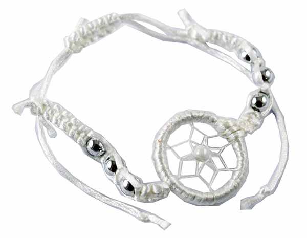 Bracelet Dream Catcher White With Beads And Adjustable Drawstring