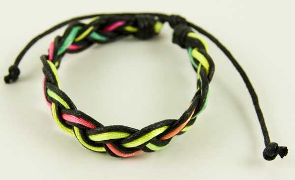 Bracelet Friendship Band Black With Tricolour Neon Thread Running Through Adjustable 6pcs