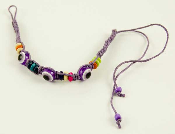 Bracelet Friendship Band Purple With 3 Turkish Eye Stones And Coloured Wooden Beads Adjustable 6pcs