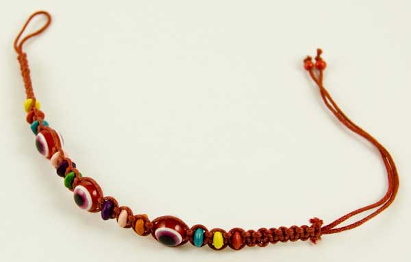 Bracelet Friendship Band Red With 3 Turkish Eye Stones And Coloured Wooden Beads Adjustable 6pcs