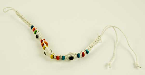 Bracelet Friendship Band White With 3 Turkish Eye Stones And Coloured Wooden Beads Adjustable 6pcs