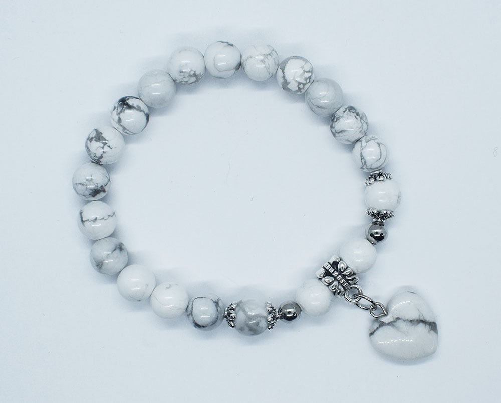 This White Howlite bracelet has been carefully shaped and polished to bring out the beautiful colour of the stone. It is strung on coordinating elastic that fits any wrist, making it comfortable and easy to wear. This beautiful White Howlite bracelet is a great way to harness the rich energies of this stone during meditation or during everyday use as a fashion accessory and it looks great worn with other crystals.