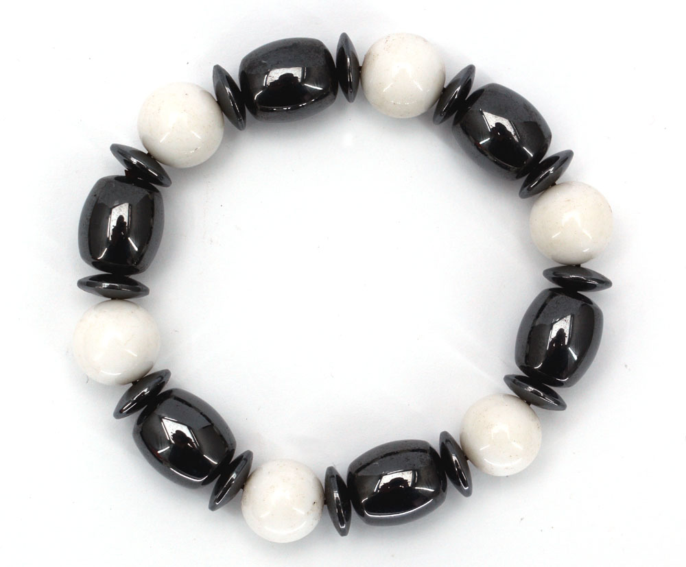 Bracelet Hematite With White Beads