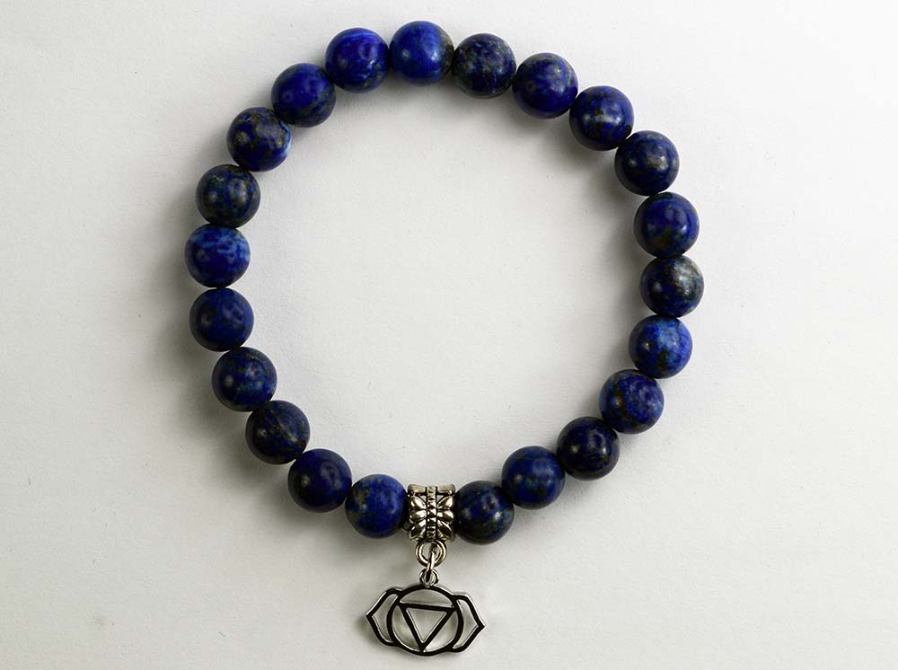 Bracelet Lapis 8mm Bead With Third Eye Chakra Charm
