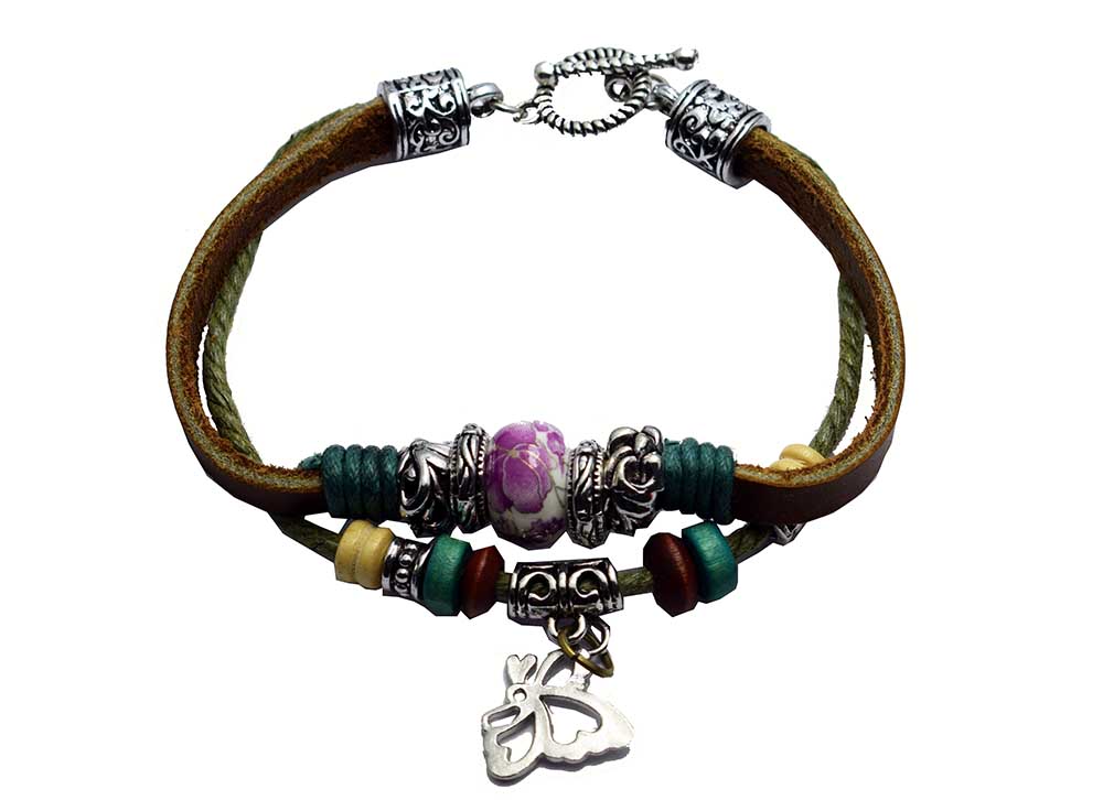 Bracelet Leather Butterfly Charm And Beads