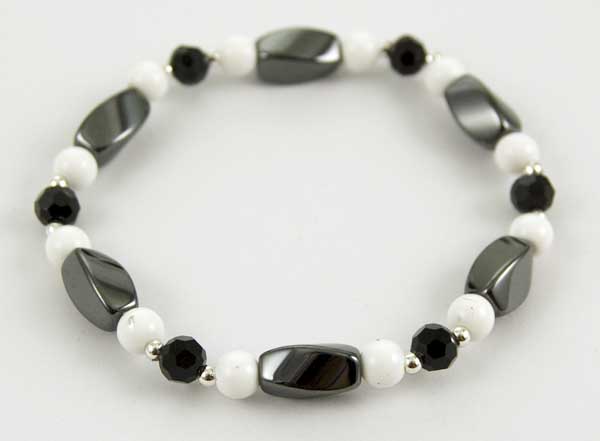 Bracelet Magnetic Hematite Elasticated 7.5cm Long Beads With Black And White Balls