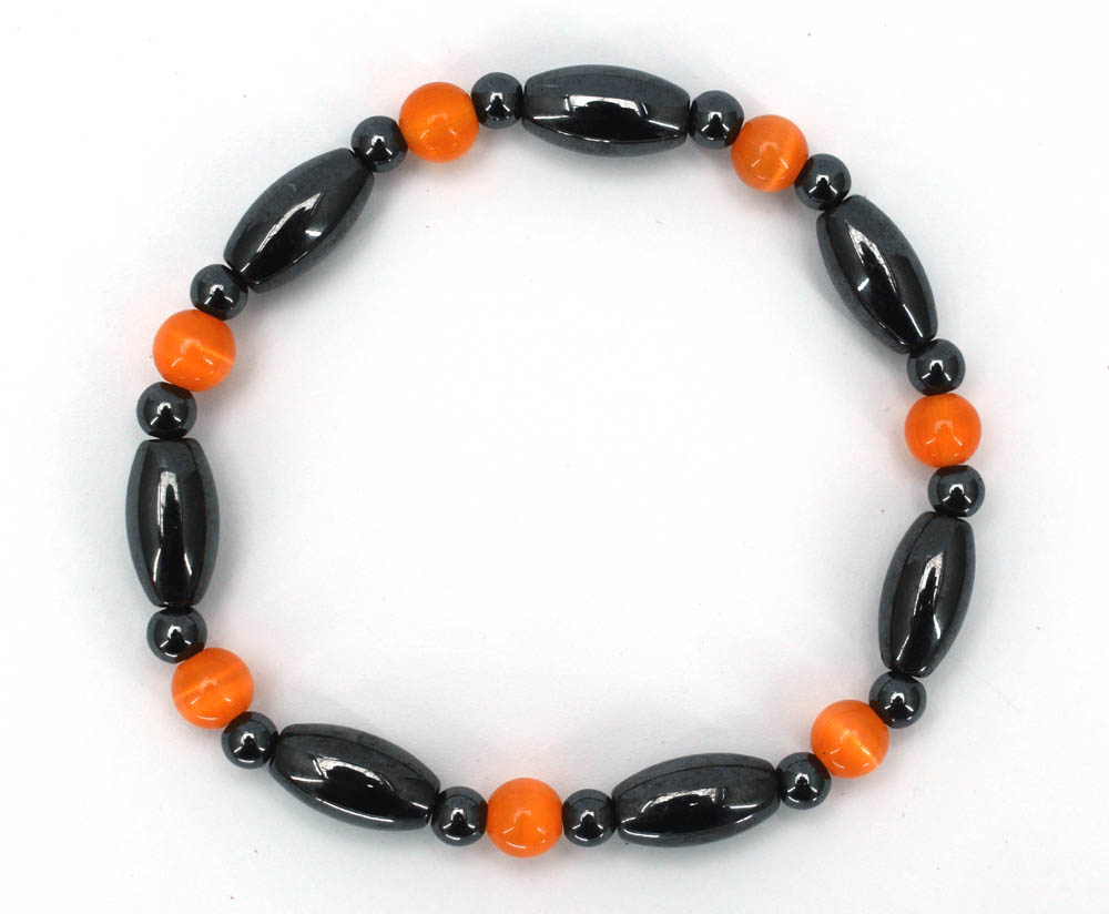 Bracelet Magnetic Hematite With Orange Cat Eye Beads