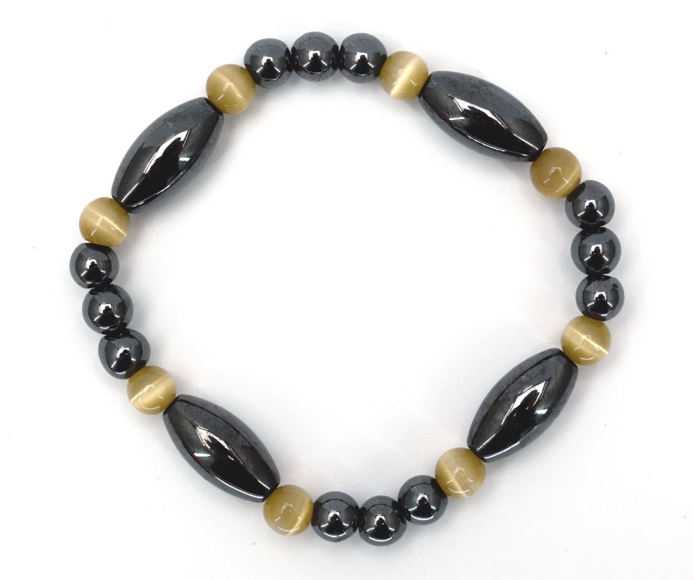 Bracelet Magnetic Hematite With Brown Cat Eye Beads
