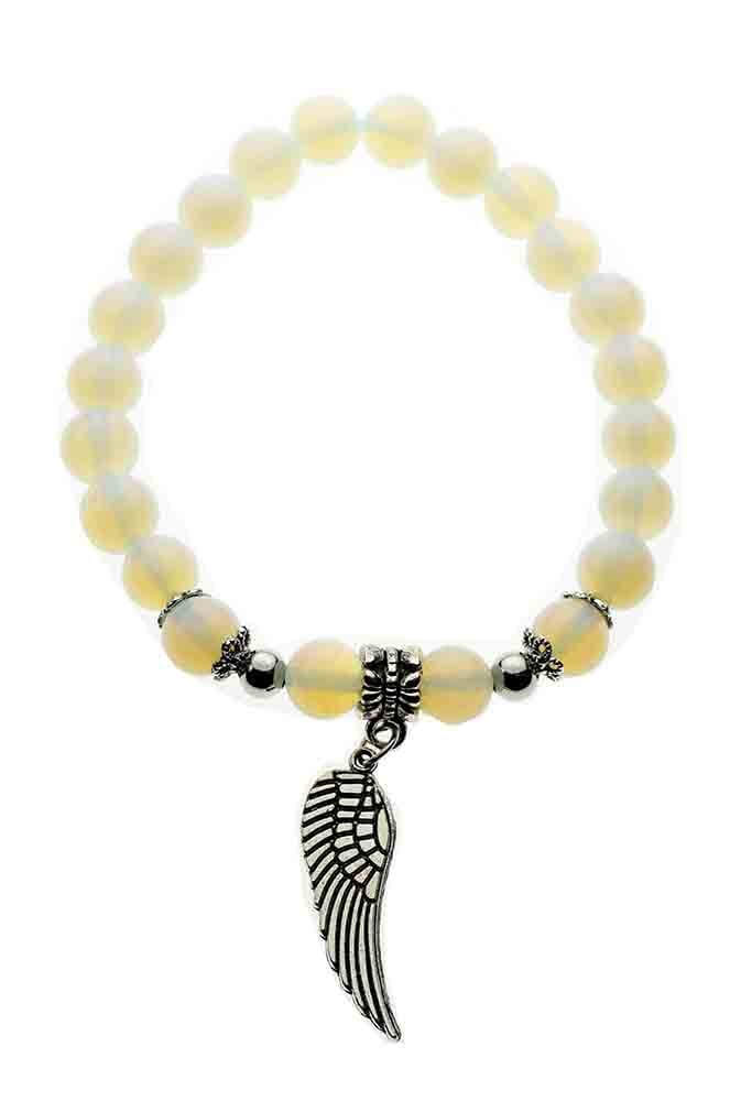 Opalite Bead Bracelet with Metal Wing