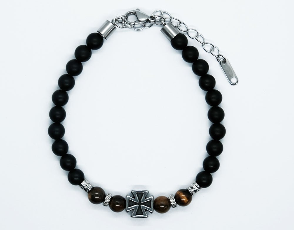 Bracelet Onyx With Stainless Steal Maltese Cross