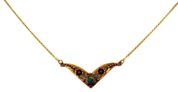 Bronze Necklace Abalone Oval Stone With Flowers 18 Inch