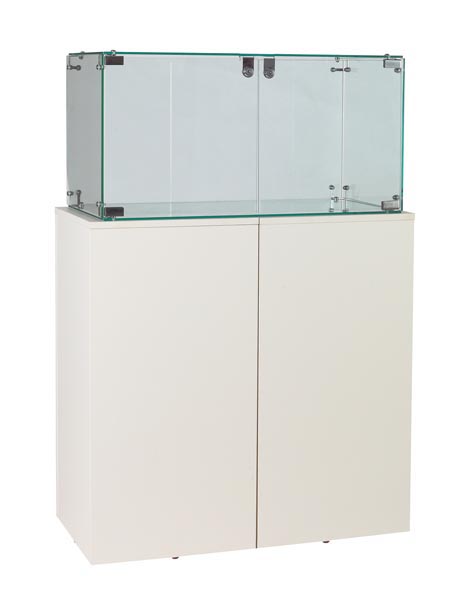 Cabinet 1100X550X1300mm Counter Combination White MDF Base With PVC Edge And 5mm Tempered Toughened Glass Complete With Lockable Hinged Door
