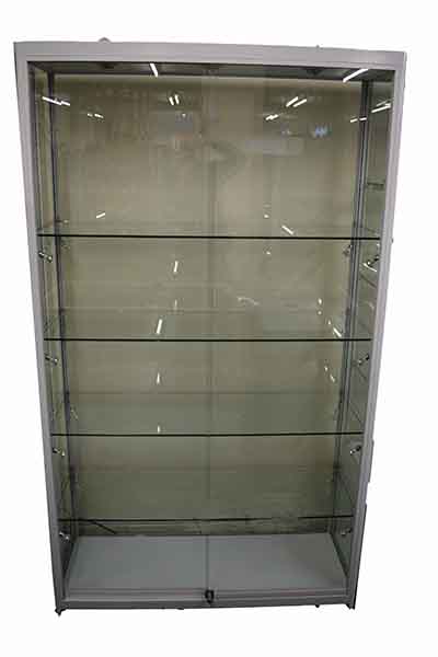 Cabinet 1200X400X1980mm With Tempered Glass And Aluminium Frame In Cream Colour. Fitted With 19 LED Lights 3 At The Top And 16 At The Sides. 4 Shelves Included. Adjustable Feet With Wheels.
