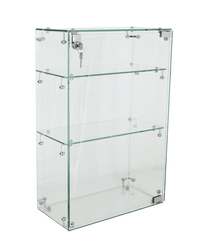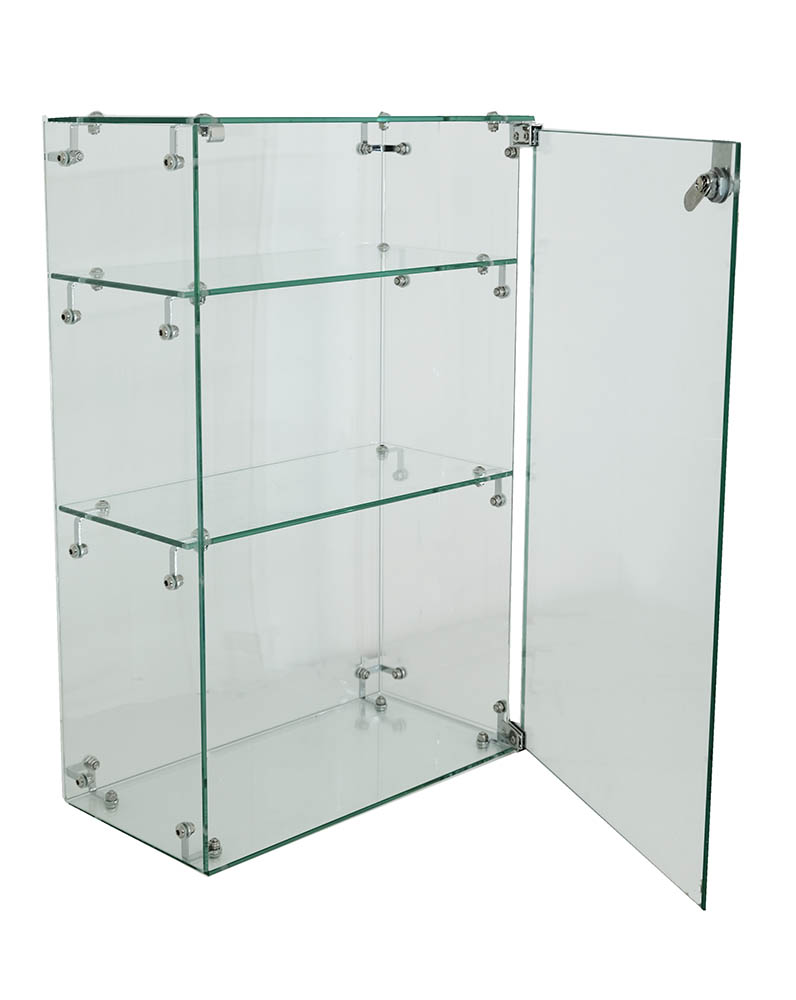 Cabinet 400X200X600mm Glass Cube Complete Square Containing 8 Pieces Of 5mm Tempered Glass With A Lockable Door. Two Shelves, Can Build More On Top And On Sides.,Lights not included.