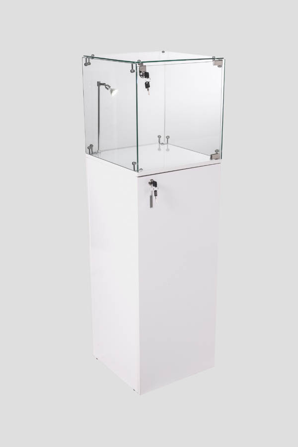 Cabinet 400x400x1750mm Tall Glass Display Combination High Quality Glossy White MDF Base With PVC Edge And 5mm Double Cube Tempered Toughened Glass Complete With Lockable Hinged Door,Lights not included.