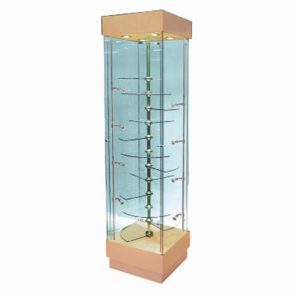 Tempered Glass- 7x20Watt Halogen Lights-12 Quarter Revolving Glass Shelves- Locking Hinged Glass Doors-Plug & Switch- Adjustable Feet- Castors- Keys Included.